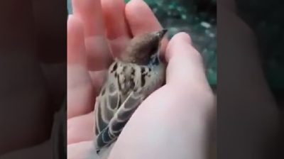 A sparrow does not want anything to be separated in a human hand.