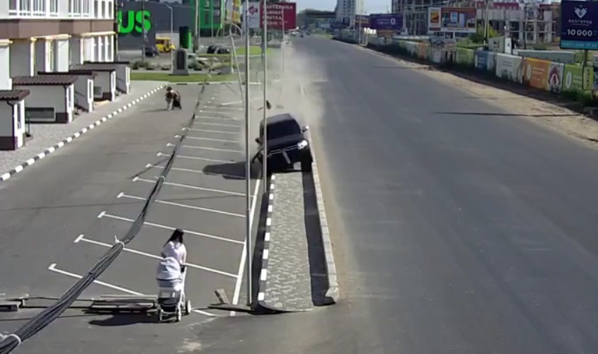 On August 13, 2017 in Kiev, Ukraine, a driver under the influence of drugs began to destroy a series of street lamps to a length of almost 30 meters, and he almost hit a woman and her child. After the incident, the driver tried to escape with the damaged car but immobilized about 300 meters away.
