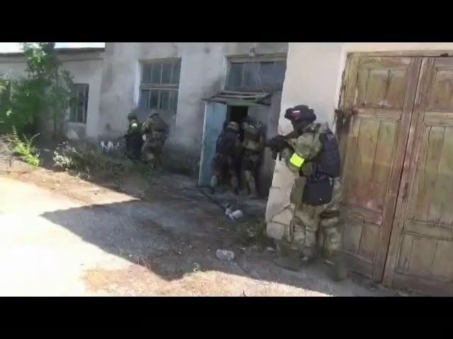 During an exercise of the special forces of the Russian police (OVER), simulated the release of hostages from a building. Police officers will throw an explosive by the building window, but the boom is unexpectedly strong and the blast will throw down a police man standing in front of a door.