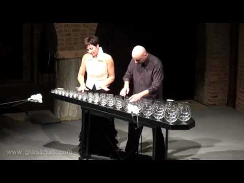 The classic track 'Sugar Plum Fairy' of P. Tchaikovsky was played by a stunning Duet to a harp from glasses