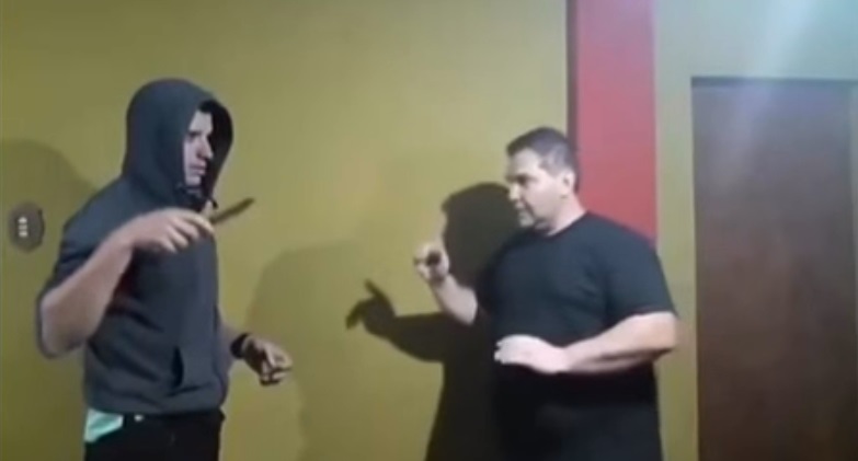 A father enlists his son to help him to shoot a video for self-defense. The young man however has not taken his role seriously.