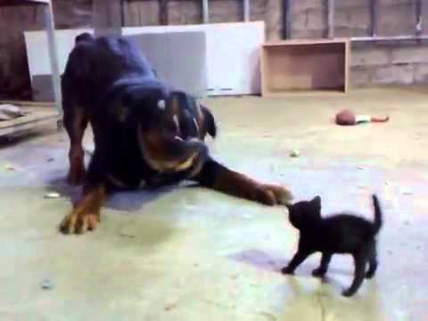 I don't think this Rottweiler had intent to do harm to the kitten, but it was at the height of the
