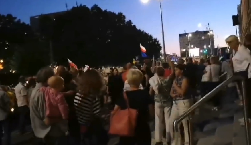 During a demonstration of the NGO COD in Poland, a man will notice that the speaker and microphone facilities of speech, supplied by a generator just in front of.
