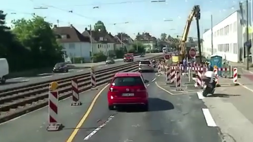 On July 30, 2018 in Karlsruhe, Germany, a woman went to her car next to a construction site, when a large metal beam left a crane and dropped to the back of the car.