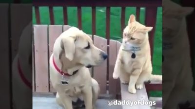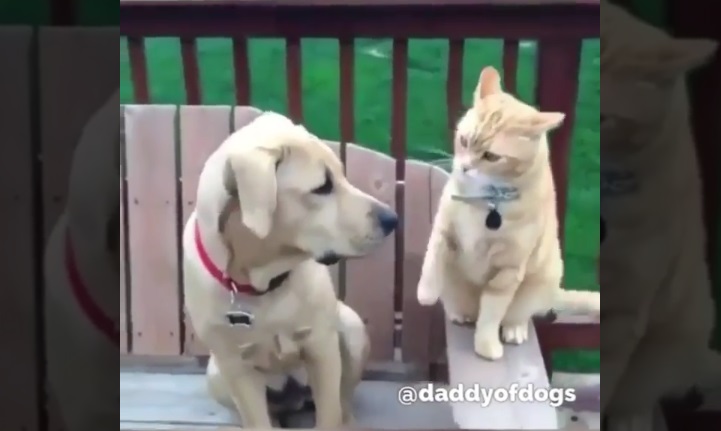 Two dogs sitting in front of a fireplace and make fondling each other. great love!