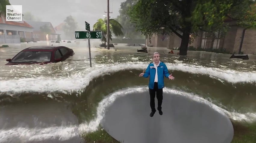 Dimensional presentation of intense weather events and the flooding that is expected to bring Hurricane Florence, by the US Weather Channel channel.