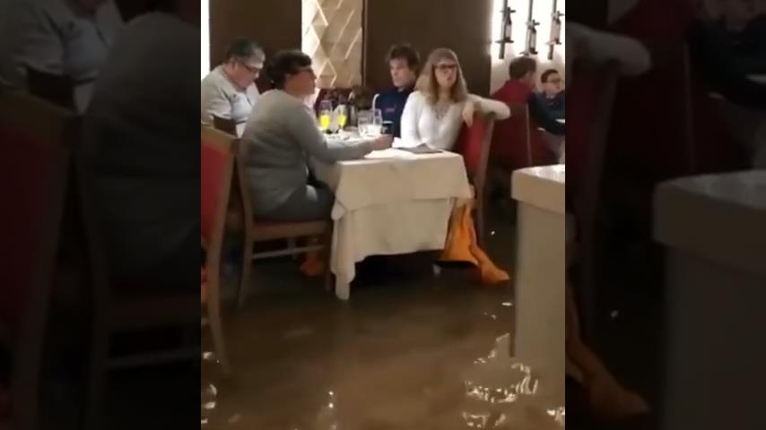 After the recent bad weather in Italy, the water level in Venice ascended. This restaurant opened with about 15 centimeters of water throughout the site. This does not seem to be intimidated owners or customers.