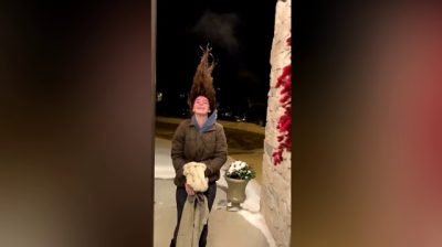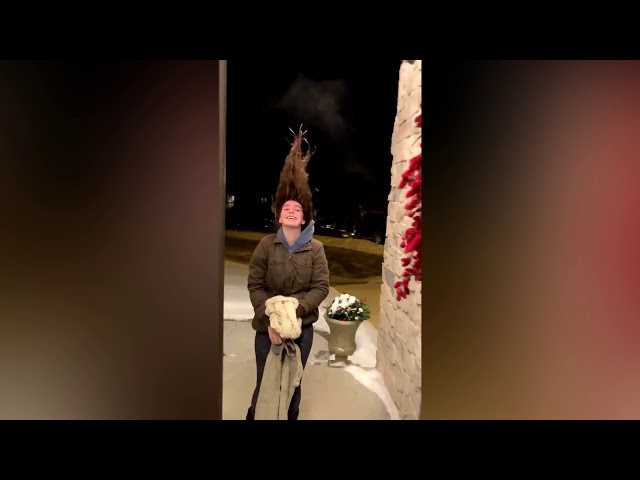 Iowa native @taylor_scallon showed the power of the polar vortex when she shared a video of herself outside with a very interesting hairstyle. She managed to get her hair to defy gravity and freeze straight up when she went outside with wet hair.