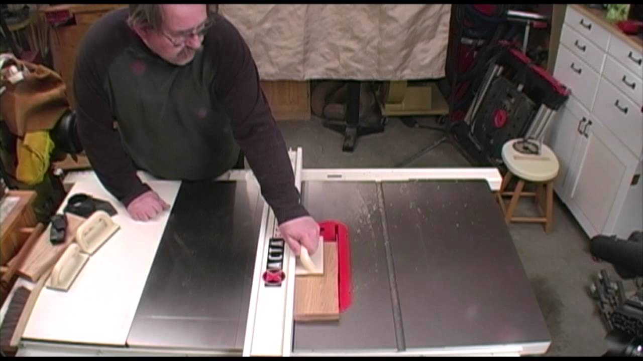 Carpenter Tom Hinges attempts to show the camera how dangerous it is to 'kick' a table saw, and will be at risk until he get injured.