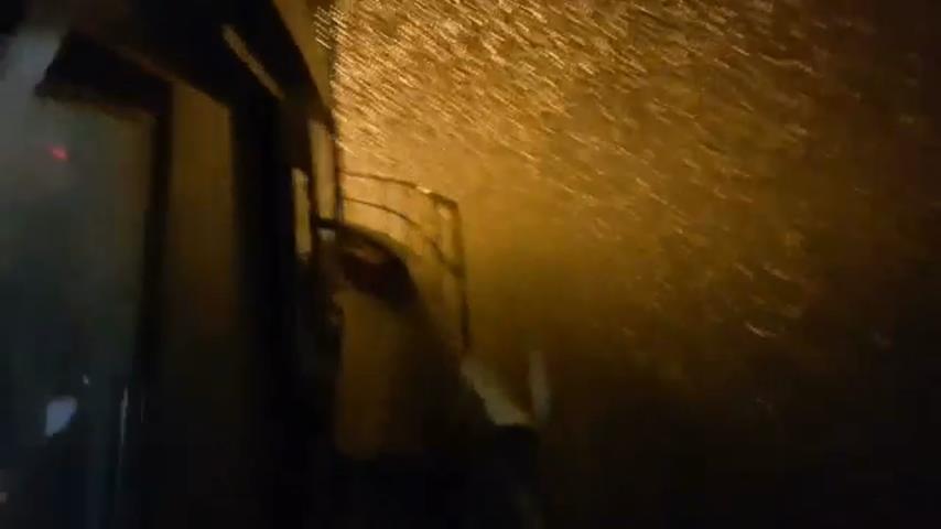 Very beautiful images during an evening snowfall, on a marine vessel.