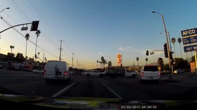 At an intersection in Los Angeles, a motorist was able to see the future. An accident happens in front of, seconds after he decides to reverse.