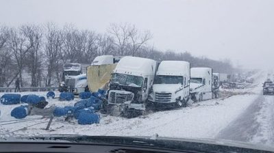 On the highway I-70 near Kansas City, Missouri, a truck driver recorded an impressive 40 Car Pile Up.