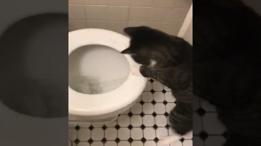 The Karuna the cat gets run amok just see the water running from the toilet cistern.