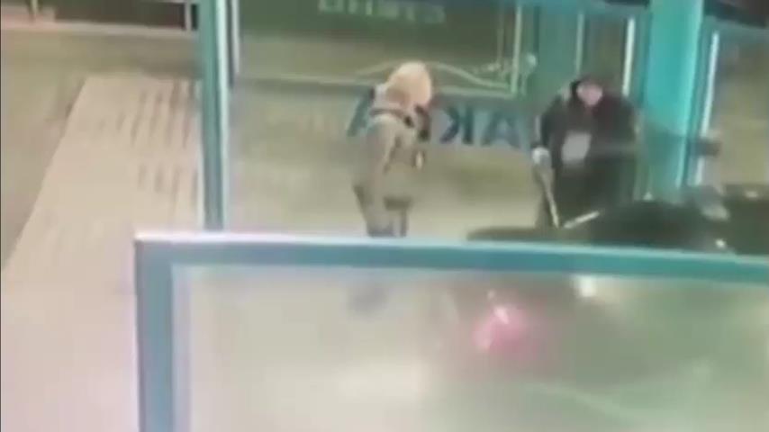 A woman wrangle with an employee at the car wash. The clerk will end the dispute with the pressing water.