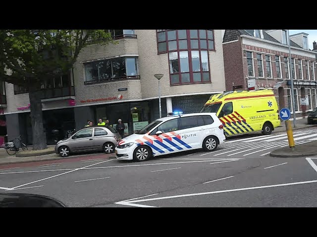Dutch policeman with humor mimics siren, probably as a joke to his colleagues on the other side of the road.