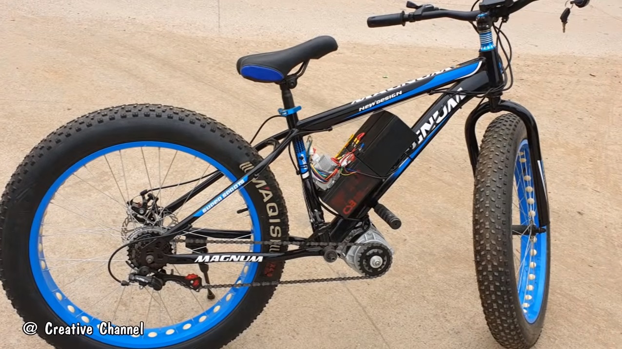 A technician installs all necessary components on a Mountain Bike, and with some modifications converts it into electricity.
