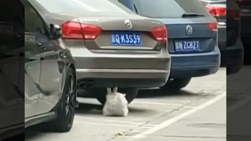 A cat exercising under a car.