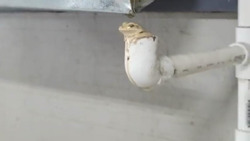 In US Florida, a small frog found the ideal place to spend the summer. He sat back down an air tube, regularly making a cool shower with water drops.