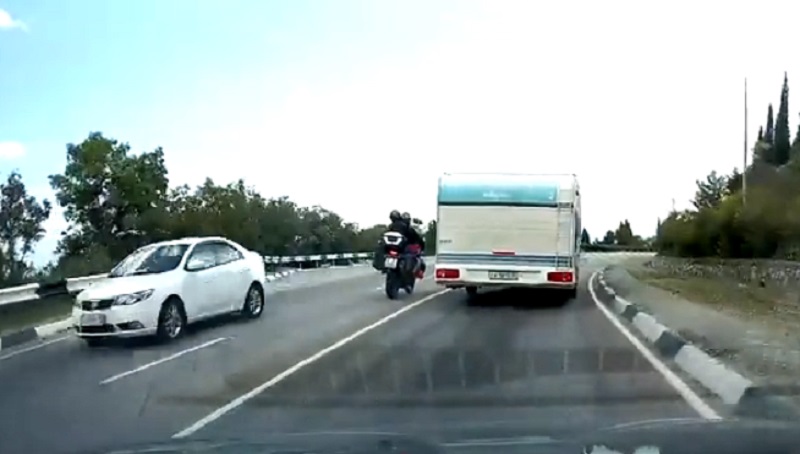 On August 10, 2019 in shame, an unconscious motorcyclist tried to overtake a wide caravan on a turn. Passing for several seconds to oncoming, the accident was inevitable. Both motorcycle passengers were not injured seriously.