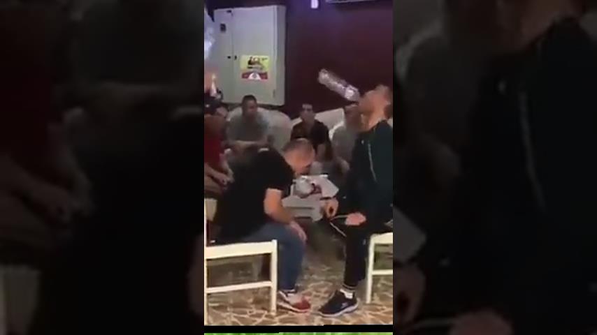 Two friends playing a game, which they keep a bottle in her mouth and hitting each other as hard as you can. But in reality this is a prank and the game is rigged...