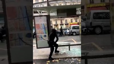 On Saturday November 16, 2019 during the 'yellow vest' demonstration in Paris, some vandals wanted to destroy a bus stop. The first he tried to hit the glass with an iron rod, but without success. A second try with a stone and a third again with an iron rod, but the glass remained intact. Stop – vandals: 1-0.