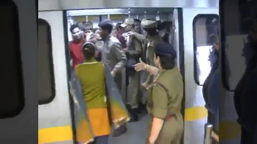 India in New Delhi, policemen slapped away by men who have entered cars Metro is only for women. India has specific cars only for women in metro, since 2009.