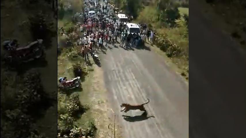 Saturday 25 January 2020 Tumsar India, the villagers gathered to try to remove a tiger had come to their fields. Three people were injured and taken to hospital.