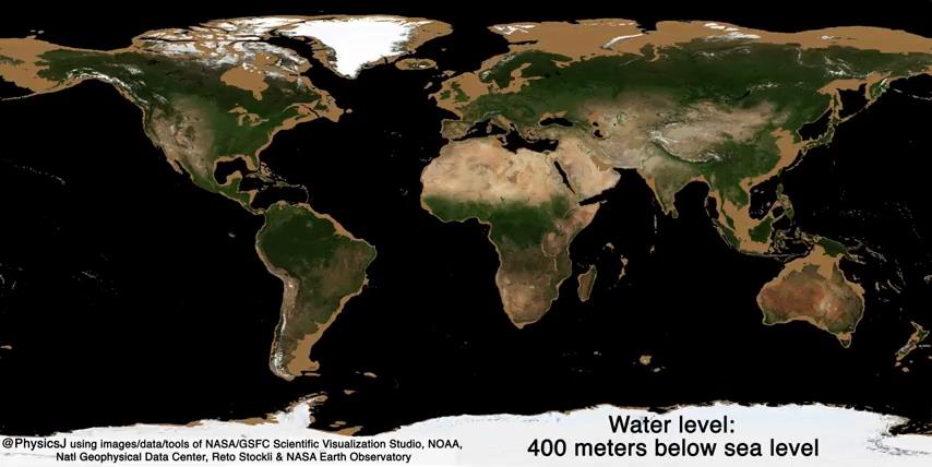 Oceans slowly emptied and reveal soil under water. An animation created by NASA in 2008 and upgraded to a higher resolution than the investigator James O'Donoghue.