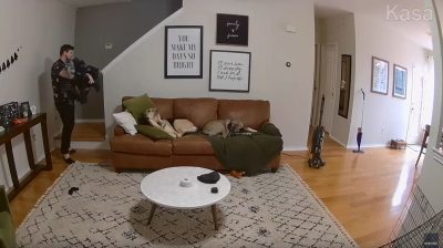 Jonsi The dog lies down on the couch in the living room when he sees his owner in a very difficult situation, as it carries the washed clothes on the first floor of the house. A sock fell to the ground and the owner can not catch her. The Jonsi then decides to take the sock and return it to his boss.