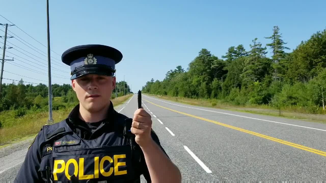 A Canadian police officer reminds motorists that it is very easy not to see a motorcyclist, when he hides behind an obstacle.
