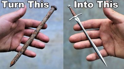 Bobby Duke shows us the process by which he turned a big rusty nail, on a small decorative sword.