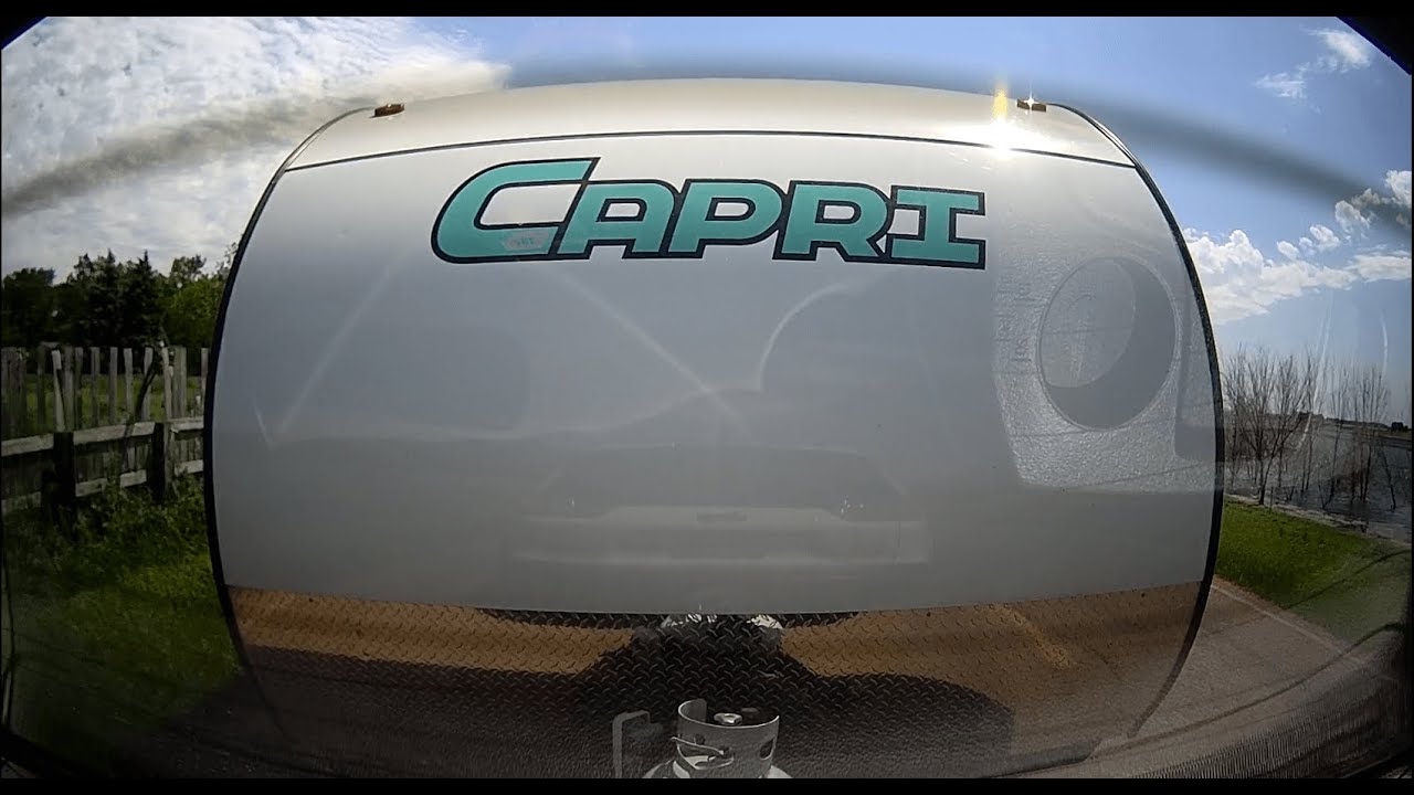 While running to cross a road, a deer will jump between a car and the towing trailer. The deer does a lot of damage to the caravan and immediately returns to the forest.