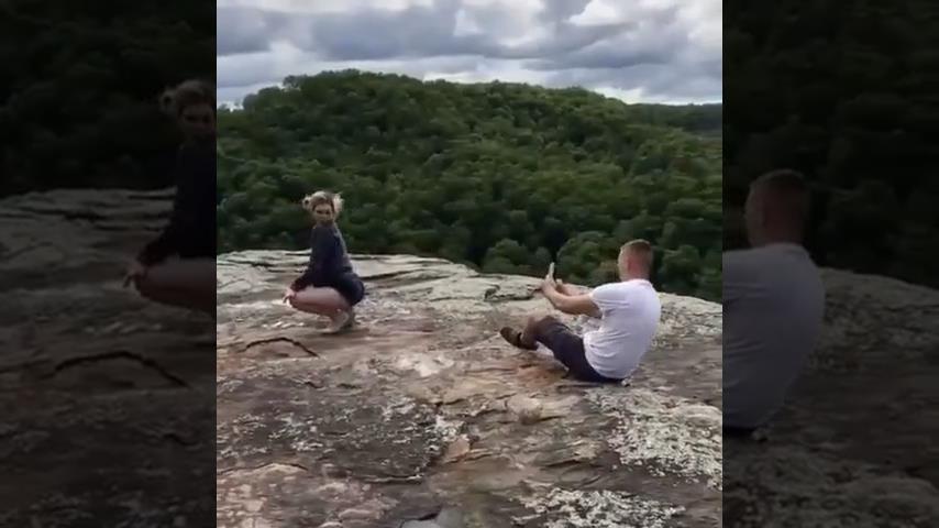 At the top of a rock, A woman asked her boyfriend to take some pictures of her for Instagram. He had a very funny idea.