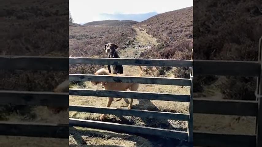 In Dundee, Scotland, two dogs trying to jump over a fence. But one seems more capable than the other.