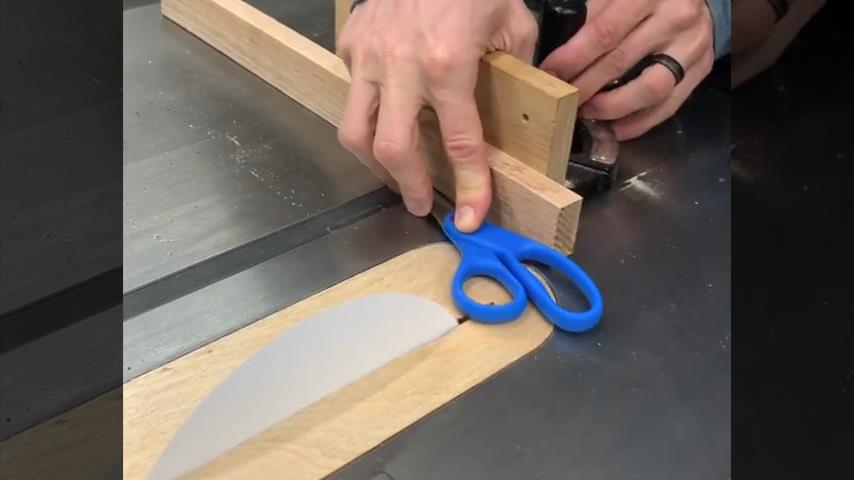 A man uses a round piece of paper in place of a circular saw, and tries to cut a plastic pair of scissors with it. The paper will be able to beat the scissors for the first time;