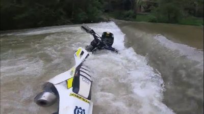 Motocross riders swept away by river current