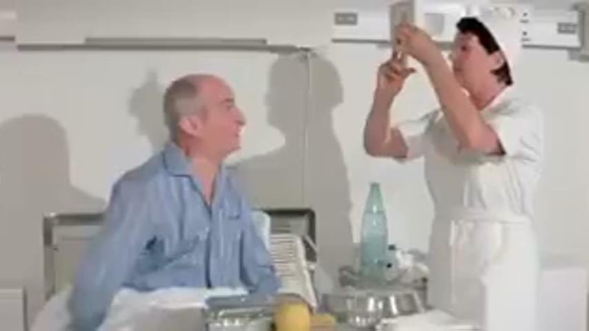 Louis de Funès did not want to inject, so the nurse took the initiative to provide the solution to the problem.