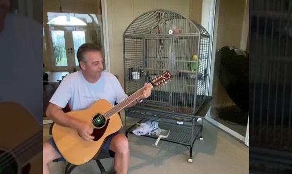 Listening to “Stairway to Heaven” on guitar by its owner, a parrot tries to imitate the vocals of Led Zeppelin's Robert Plant.