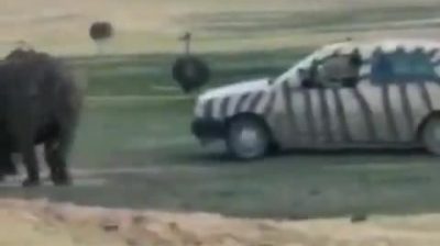 In a narrow two-way road in Russia, a woman steps aside when she sees coming towards her a...