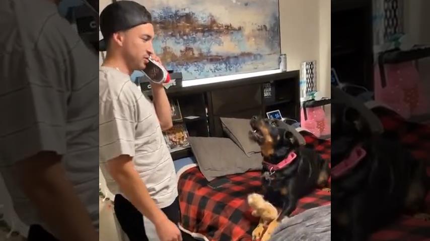 When a dog hears its owner say the word vet in a fake phone call, immediately rages.