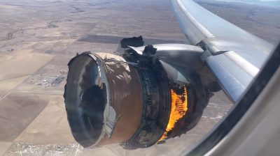 On Saturday, February 20, 2021, A Boeing 777 made an emergency landing at Denver Airport from which it had taken off a few minutes earlier., due to fire in an engine. Flight UA328 was scheduled to fly to Honolulu, but within minutes of take-off the plane was damaged by the engine. One of the 231 passengers videotaped the engine that had almost collapsed. The plane landed safely one hour after takeoff. Residents of a neighborhood in Broomfield, a suburb of Denver, they saw debris falling from the sky. Fortunately, No one was injured.