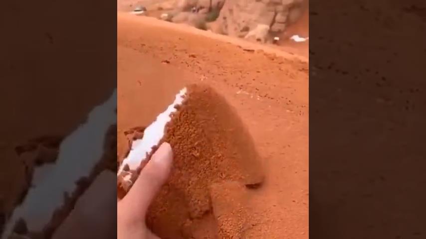 After snowfall in the Sahara desert, the snow is covered with sand and looks like a sweet.