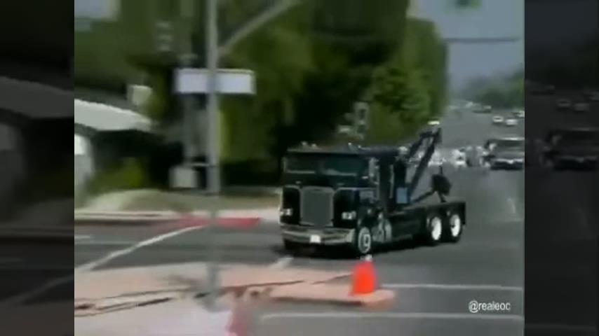 Some footage from the shooting of the iconic truck chase scene, in the 1991 film “Terminator 2”..