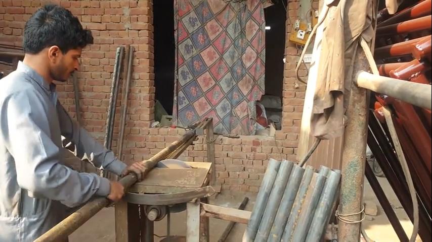 A worker in Pakistan makes a traditional woven bed called Charpai.