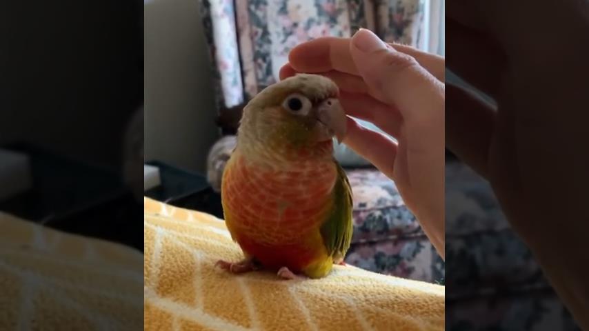 A parrot sees a hand approaching him, but without caressing him. So, will decide to take some initiatives.