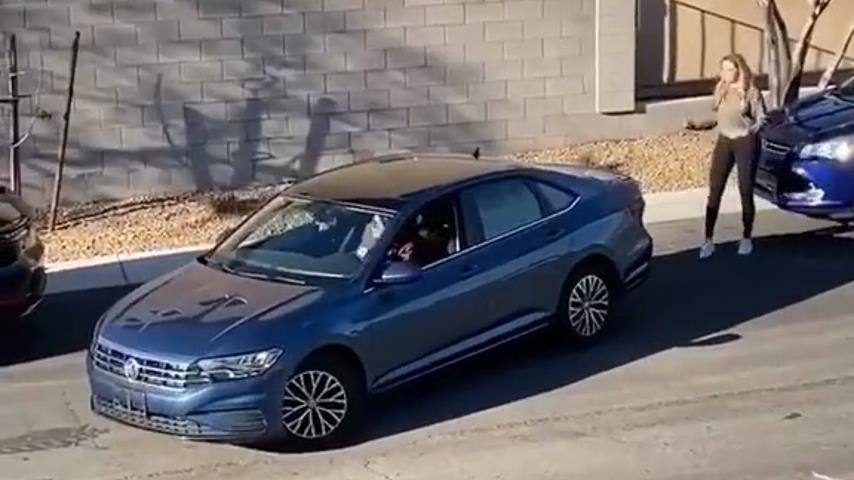 A woman comes to help a driver who has difficulty parking, and then leaves in her vehicle that was parked right behind.