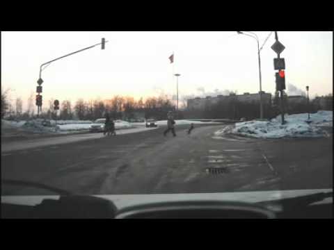 In front of a pedestrian crossing on a street in South Korea, a cat patiently waits for the light to turn green before passing...