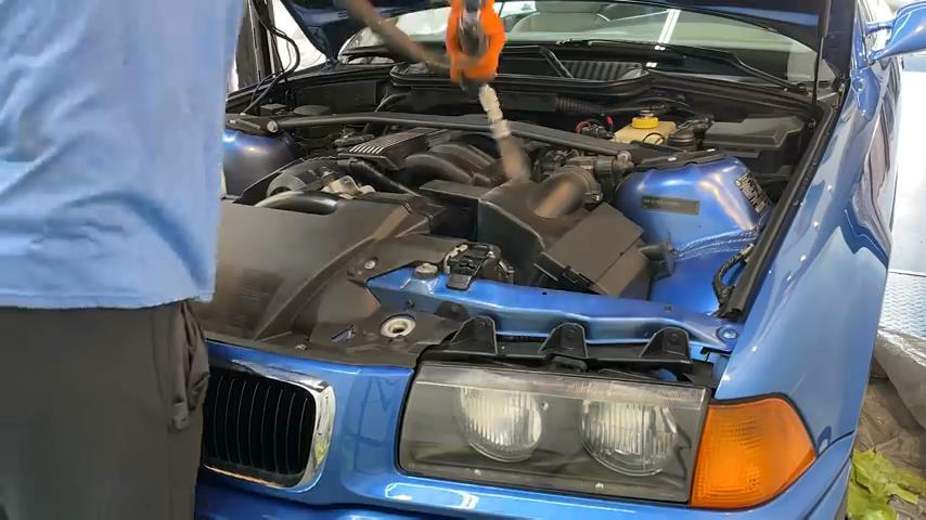 Gentle and efficient cleaning of a BMW M3 E36 using a dry ice press machine. The chassis was cleaned for the first time in this way after 150.000 km.