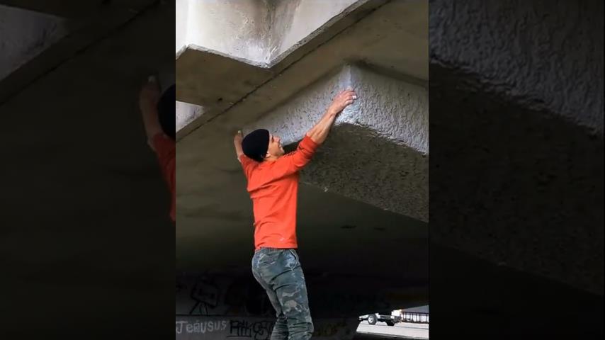 An experienced climber managed to complete a rather difficult challenge on a bridge.