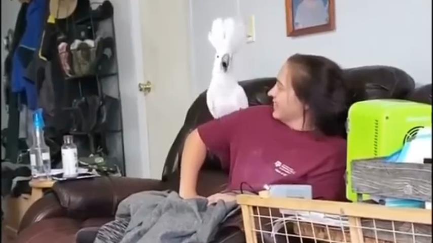 A parrot competes with its owner in a howl.